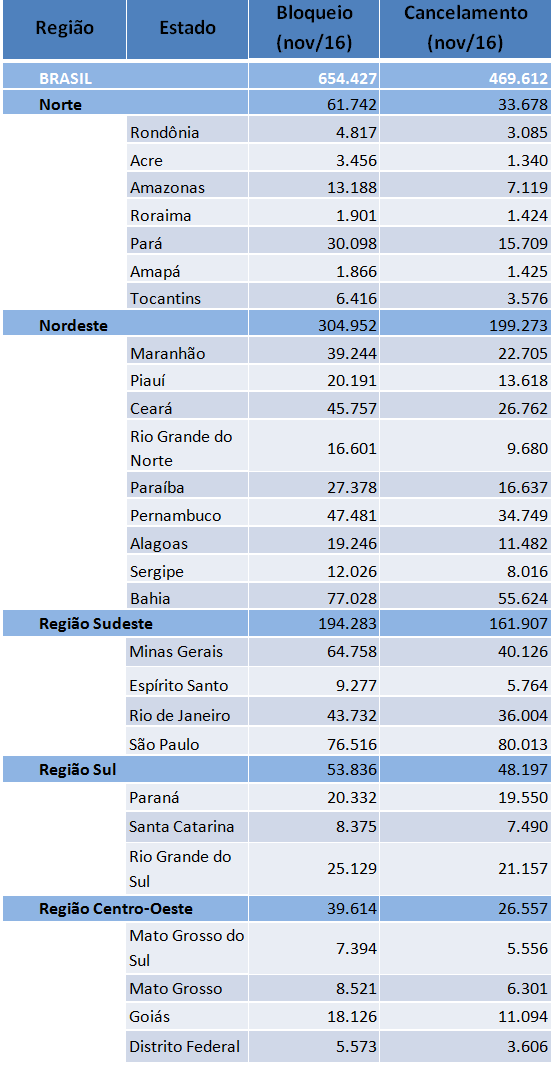 Do total de benefícios que apresentaram indícios de irregularidades, o MDSA determinou o cancelamento de 469 mil (3,3%) e o bloqueio de 654 mil (4,7%). Em todos os casos, foi constatado que a renda das famílias era superior à exigida para ingresso e permanência no programa.